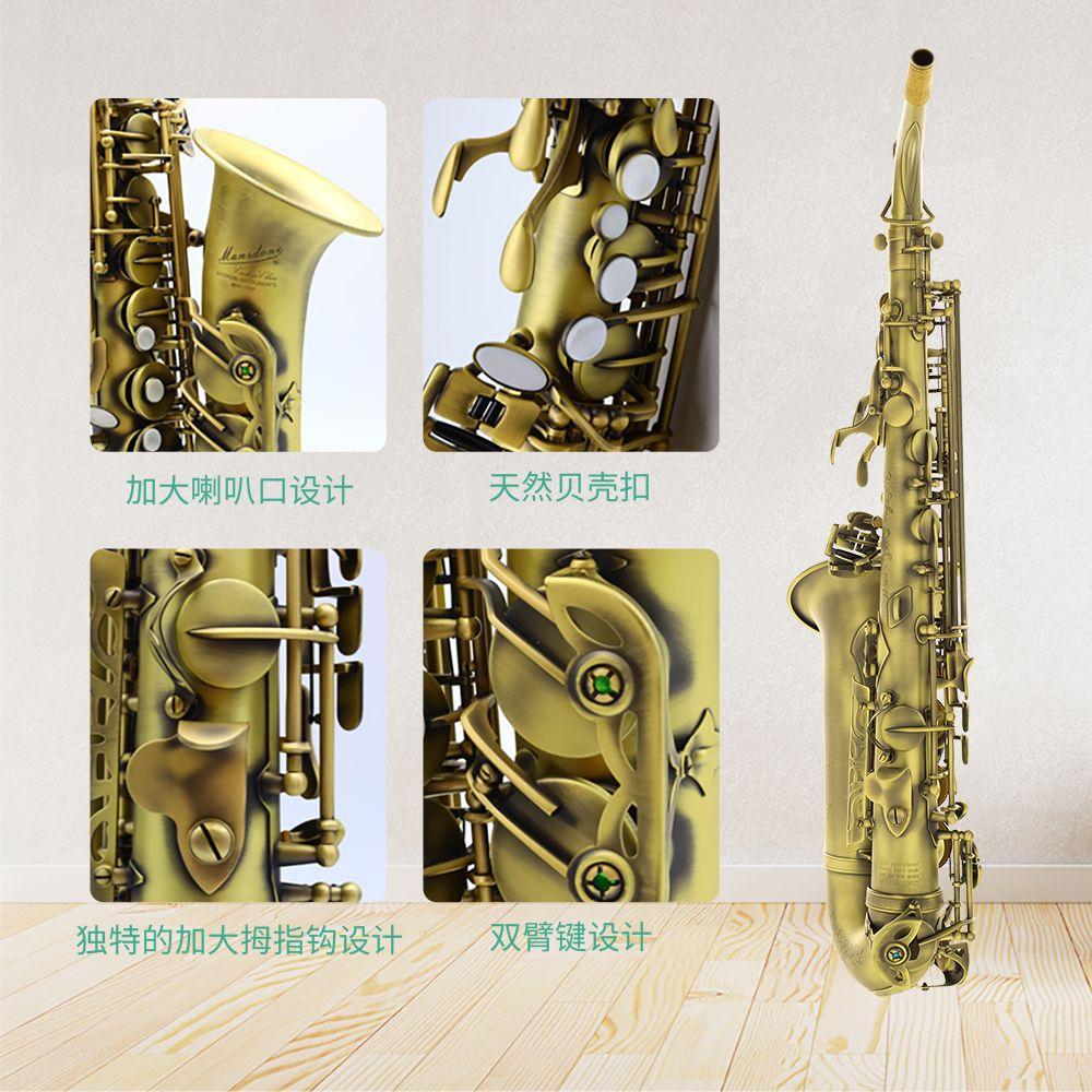 1.外观 :静电吸附和精工雕花工艺。表面工艺:复古青铜饰面。青铜色萨克斯的灵感来源于中国古代的青铜器。青铜色还区分为:亮光青铜色和哑光青铜色。本款萨克斯采用哑光青铜色,经过这种工艺处理的萨克斯外观给人一种稳重、大气的感觉。双重电镀工艺确保了耐用和持久的外观。青铜外观密度高、振动特性优异,能为乐器带来更为温暖、厚重且反应灵敏的音色。最后的清漆处理,旨在最大限度地保留青铜的自由振动特性,同时其外观会随着时间流逝,形成独特的包浆,更显韵味。