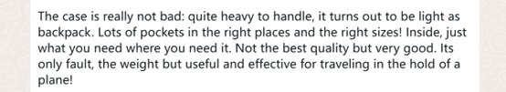 关于琴盒:虽然搬运时感觉很重,但作为背包使用时却很轻便。口袋的位置和尺寸都很合适!内部空间的设计也恰到好处。虽然不是最好的质量,但也很不错。唯一的缺点就是重量,不过作为托运行李使用时是优点,很实用!